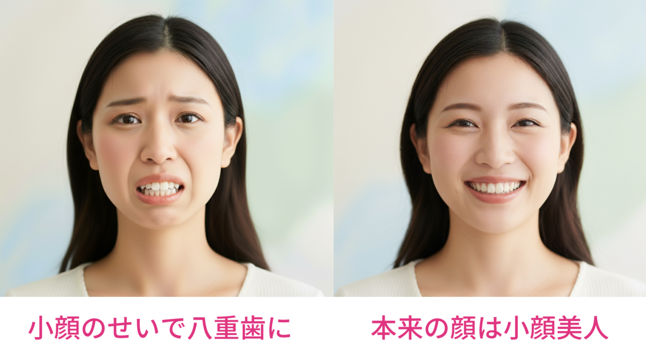 つまり本来は美人の条件である小顔のせいで、歯並びが悪くなってしまったという状況。